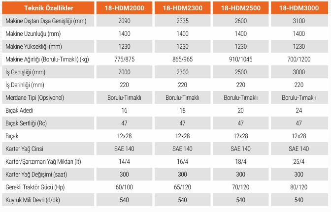 Vertical Milling: It is a soil tillage machine that works with knives that turn right and left perpendicular to the soil. It makes the shredded stubble ready for planting in one go. It is used to prepare the seed bed, to destroy plant wastes and weeds, to dissolve the fertilizer in the soil, to aerate the soil and to expand the inner surface of the soil. • High working width provides great savings in time and fuel in large areas. • It reduces the base formation in the soil and enables the roots to develop faster. • The blades work by making a right-left rotation movement, they do not hold soil and work comfortably in rainy lands. • Working at a right angle allows the soil to pass rain and snow water more easily. • It offers the possibility of sowing at once with the sowing machine connection apparatus. 540 • It does not mix the soil by turning it upside down, thus; It ensures that the lower parts of the soil retain their moisture.